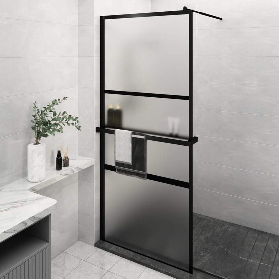 ผนังห้องอาบน้ำแบบวอล์กอินสีดำ ขนาด 35.4"x76.8" พร้อมชั้นวางของ กระจก ESG และฉากกั้นอาบน้ำอะลูมิเนียม