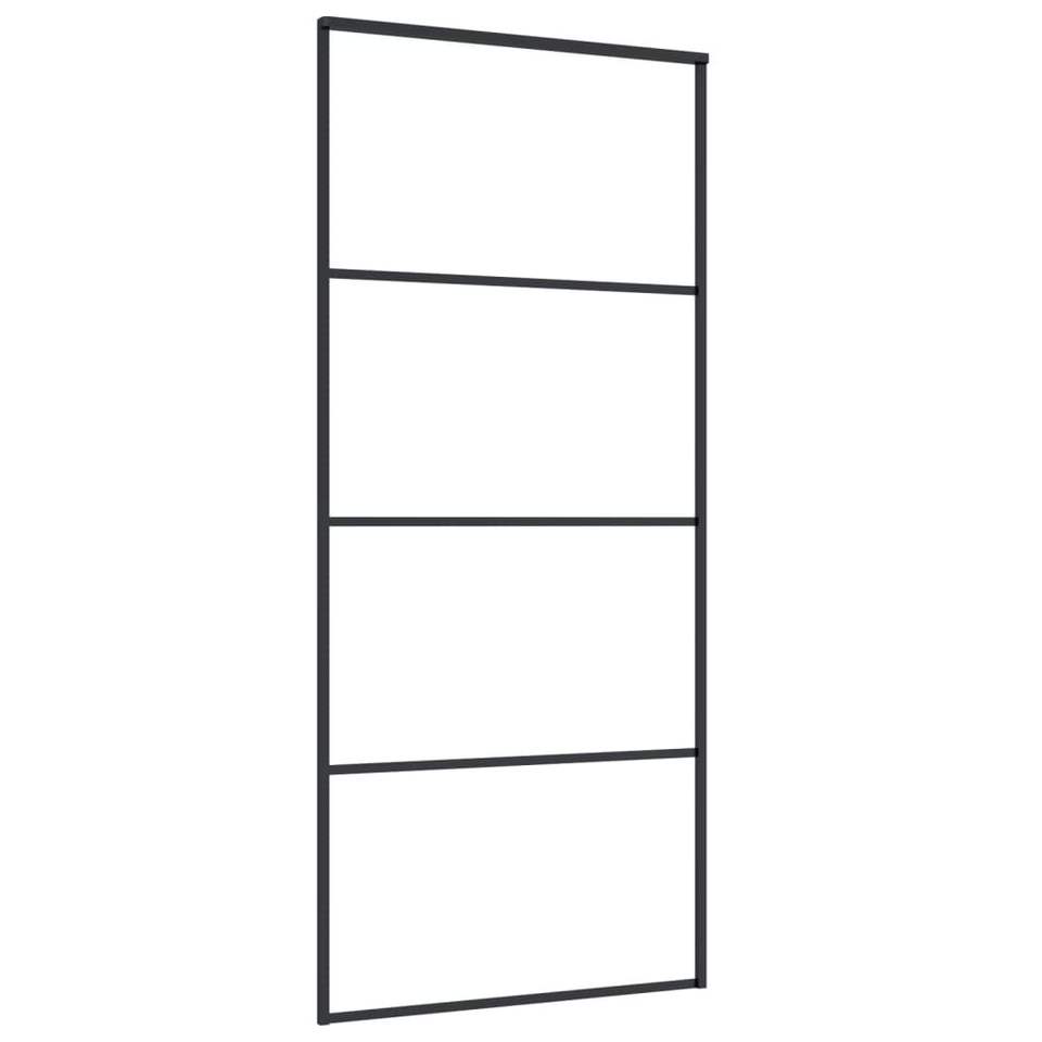ประตูบานเลื่อนอะลูมิเนียมสีดำขนาด 35.4"x80.7" พร้อมกระจกฝ้า ESG