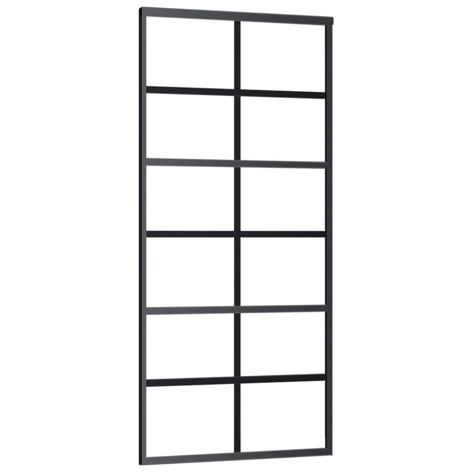 ประตูบานเลื่อนกระจก ESG สีดำ ขนาด 35.4"x80.7" พร้อมกรอบอลูมิเนียม