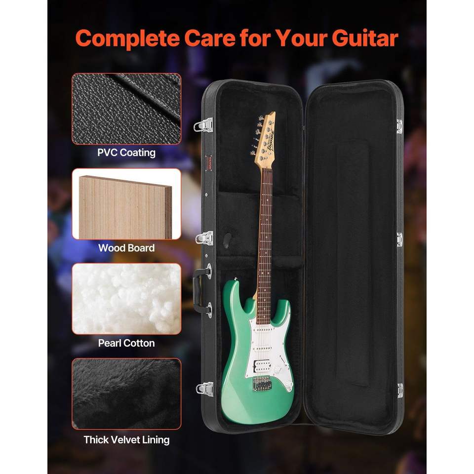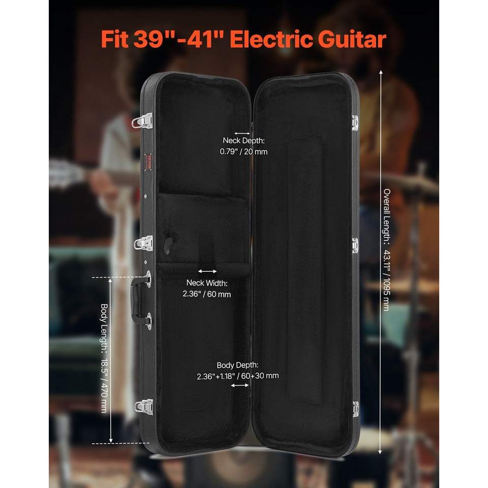 Black 43.11 Electric Guitar Hard Case PVC Padding Water-Resistant Shell Lock Latch Keys Handle Rectangular Instrument Bags Cases