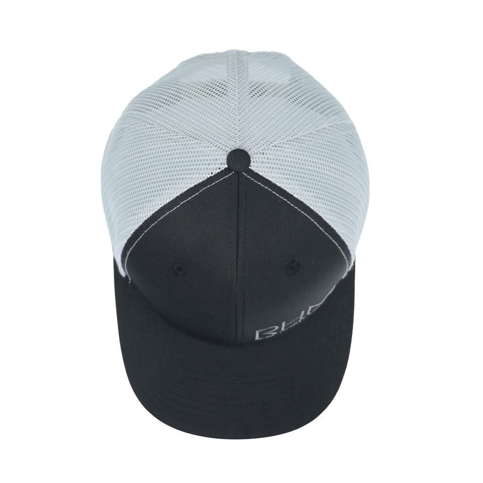 หมวกเบสบอลตาข่ายปักลาย 6 แผง สีดำ ดีไซน์โลโก้ 3 มิติ สไตล์สปอร์ต เหมาะสำหรับกิจกรรมกลางแจ้ง เช่น ปั่นจักรยาน ให้ภาพลักษณ์ที่เป็นทางการ