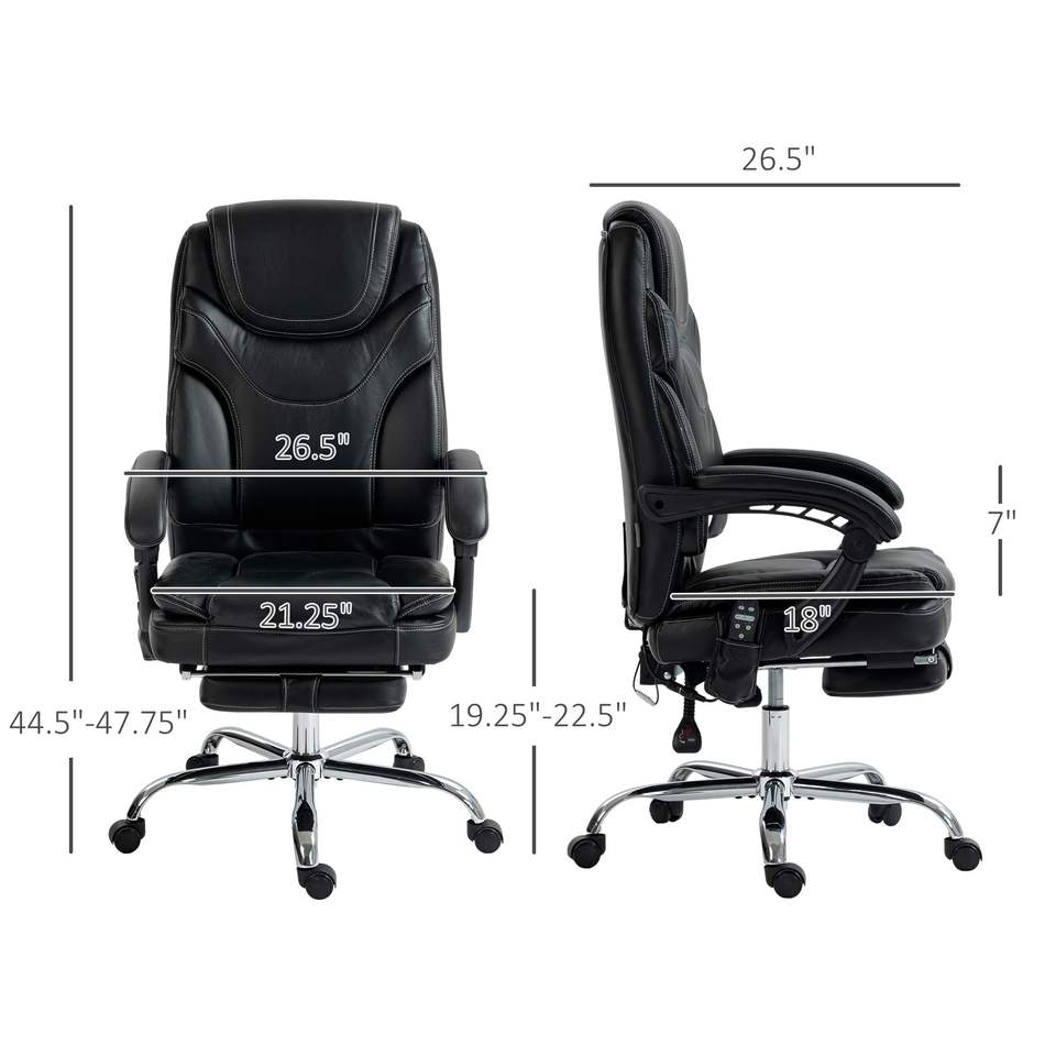 เก้าอี้สำนักงานนวดสั่นสะเทือน 6 จุด สีดำ พร้อมเบาะหนัง PU ปรับเอนได้ พร้อมที่พักเท้า
