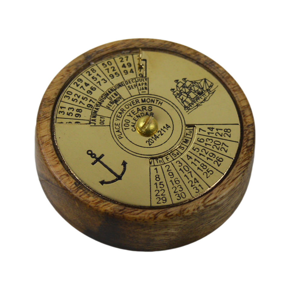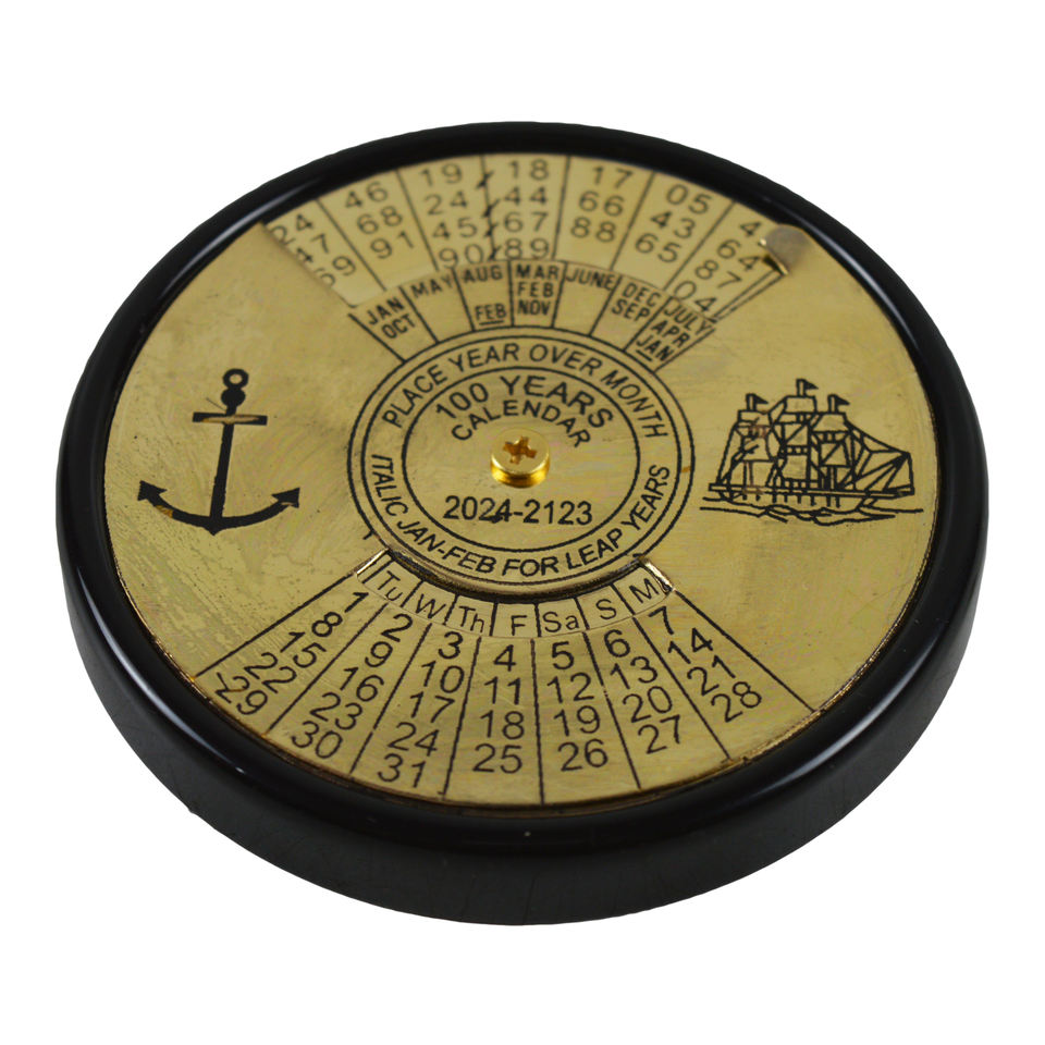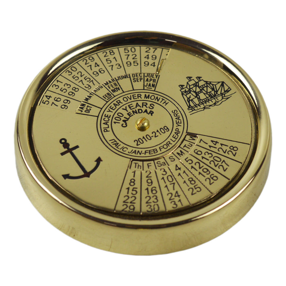 เข็มทิศปฏิทินอะคริลิคสีดำเงาทองเหลือง100ปีปฏิทินการเดินเรือทางทะเลสินค้าที่มีน้ำหนักกระดาษของขวัญโบราณถาวร