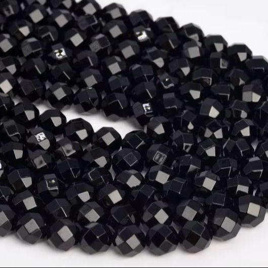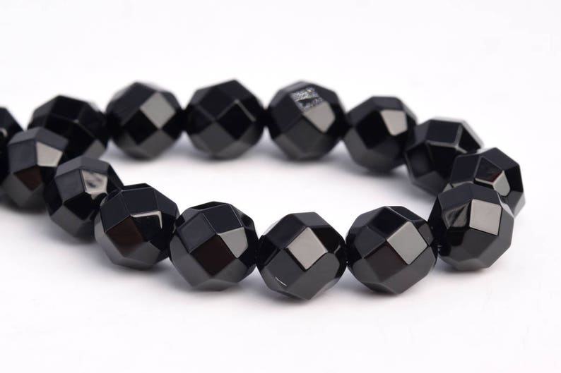 ลูกปัดอาเกตสีดำ แท้จากธรรมชาติ รูปทรงเหลี่ยมและทรงกลมเจียระไน ขนาด 15 นิ้ว ขายส่งจำนวนมาก