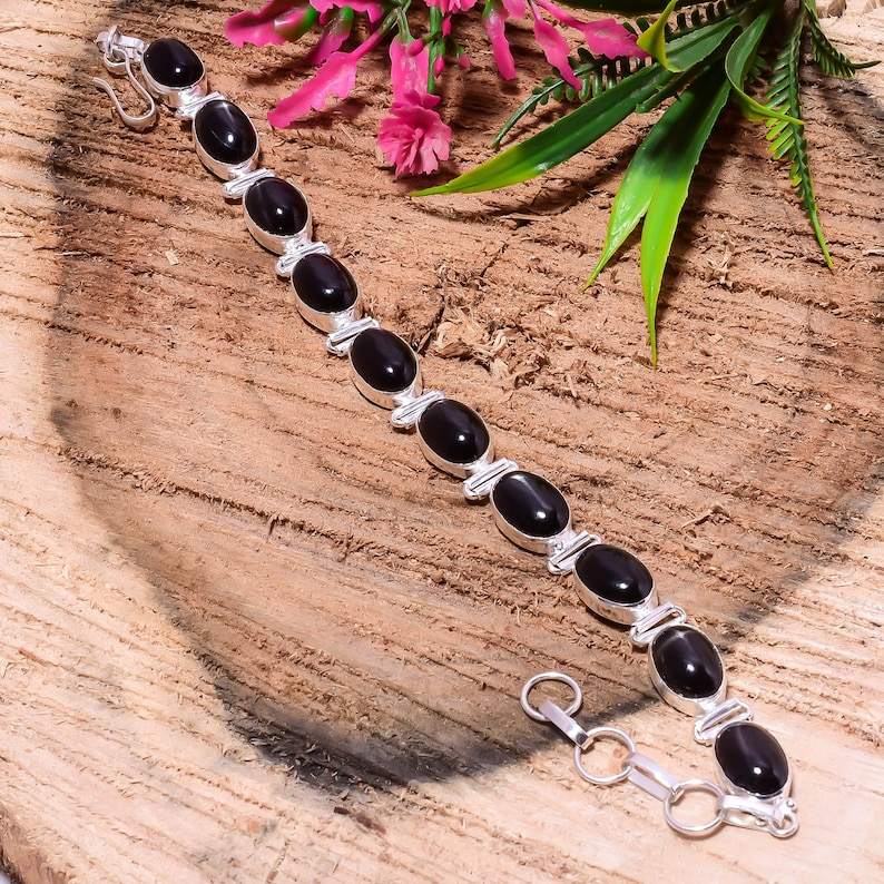 กำไลหินอาเกตสีดำ กำไลเงินรูปอินฟินิตี้ทำมือ เครื่องประดับหินสีดำสไตล์มินิมอล ของขวัญสำหรับเธอ