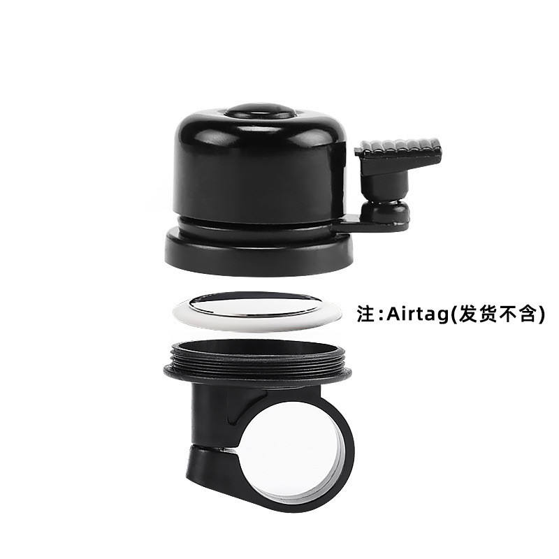 กระดิ่งจักรยานอะลูมิเนียมอัลลอยสีดำพร้อมที่ใส่ Airtag สำหรับจักรยานเสือภูเขา เสียงดัง อุปกรณ์เสริมสำหรับการปั่นจักรยาน