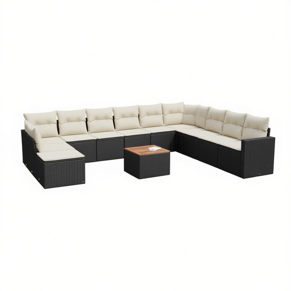 ชุดโซฟาสวนสีดำและครีม พร้อมเบาะรองนั่ง เฟอร์นิเจอร์กลางแจ้ง ทนทานต่อรังสียูวี ทำจากหวาย PE ดีไซน์ร่วมสมัย กันน้ำ