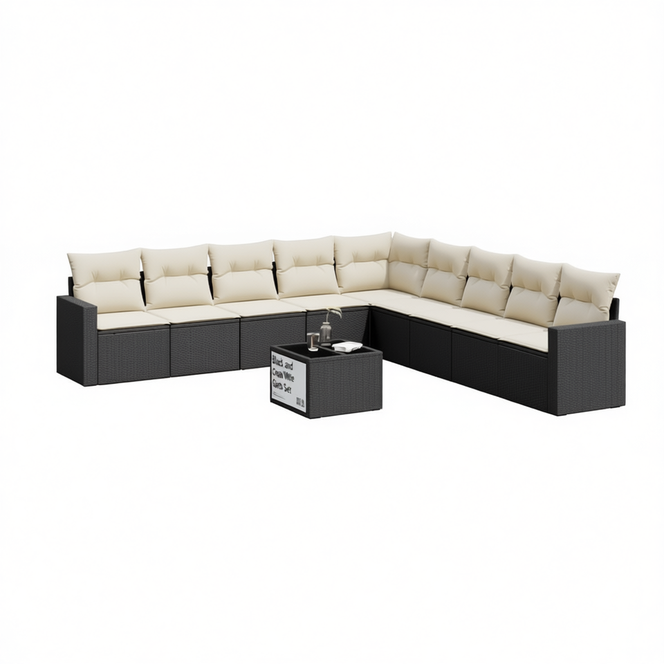 ชุดโซฟาสวนสีดำและสีครีมขาว เฟอร์นิเจอร์หวายกลางแจ้งพร้อมเบาะโฟมความหนาแน่นสูง ดีไซน์ร่วมสมัย กันน้ำ