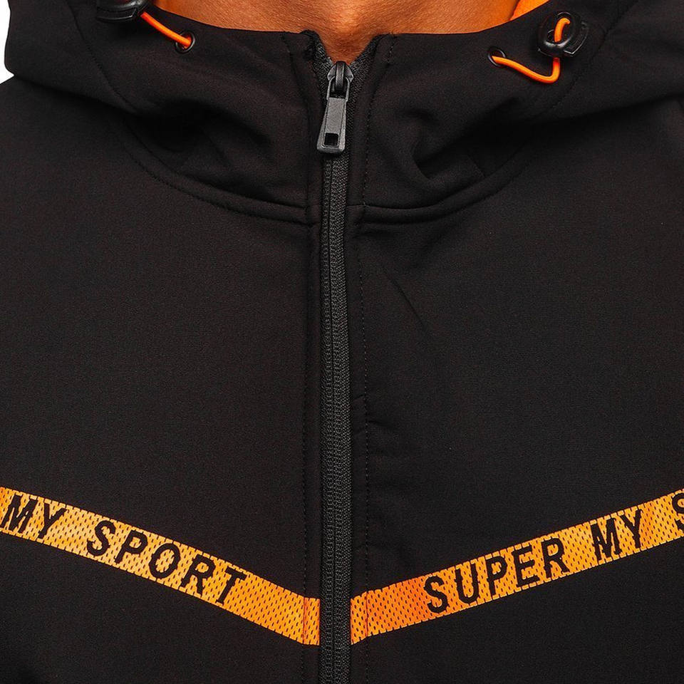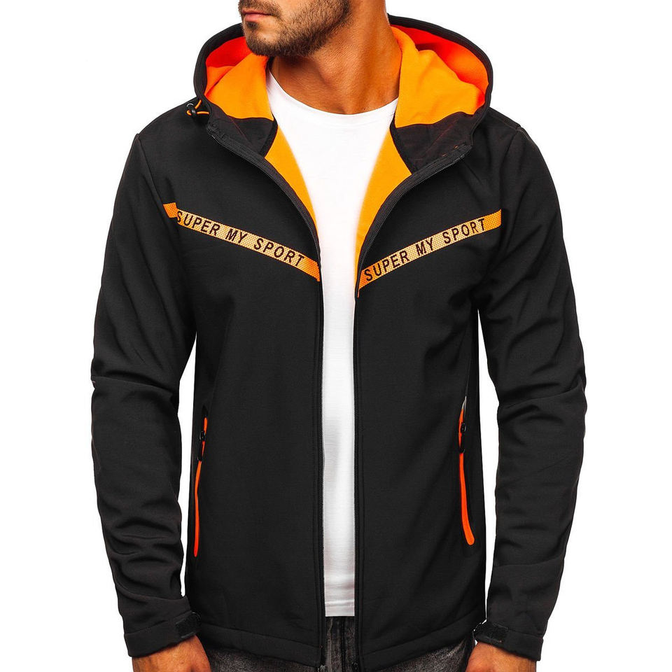 แจ็คเก็ตผ้านุ่มสีดำและสีส้ม
