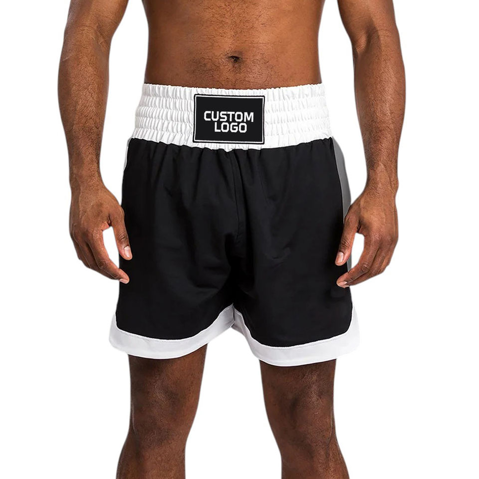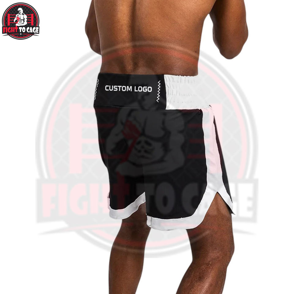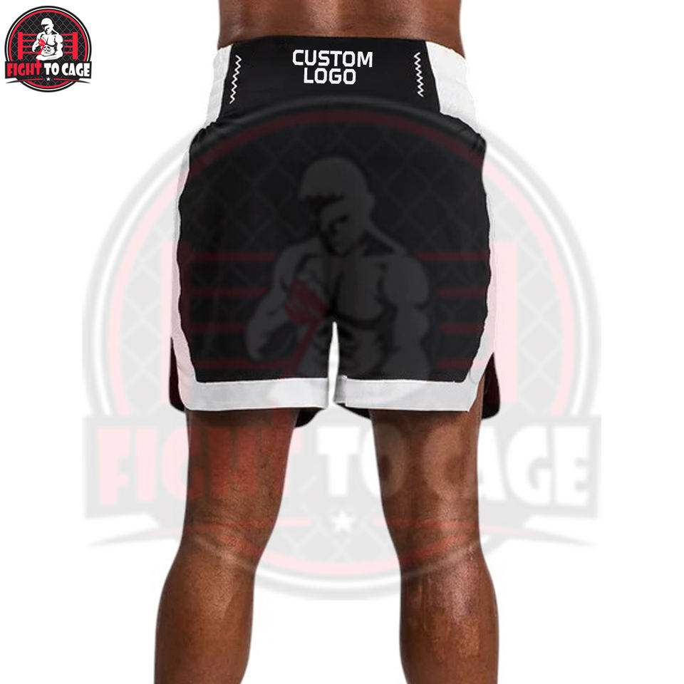กางเกงชกมวย Black White FIGHT CAGE GEARS บริการ OEM ODM คุณภาพพรีเมียม ผ้าโพลีเอสเตอร์ระบายอากาศได้ดี รับทำโลโก้ตามสั่ง อุปกรณ์ฝึกซ้อม ฤดูใบไม้ร่วง