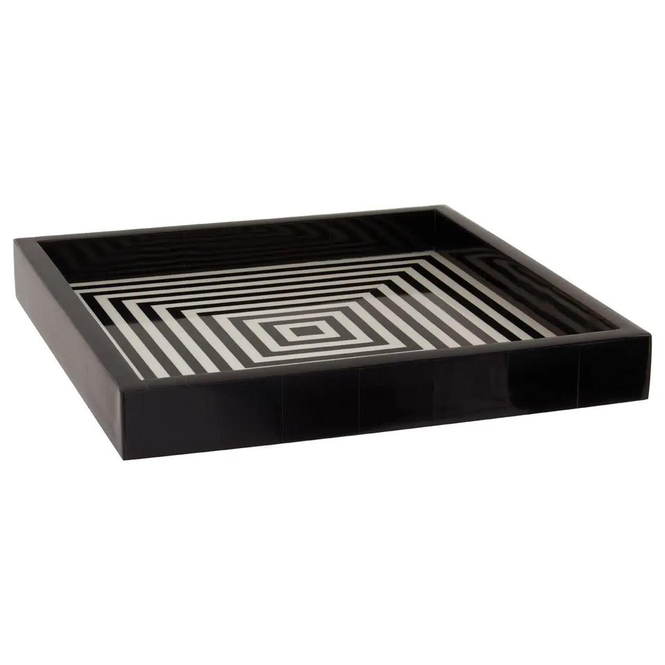 ถาดไม้ทรงสี่เหลี่ยมพิมพ์ลายสีดำและสีขาวสำหรับร้านกาแฟโรงแรมและชายหาดขนาด24x40เซนติเมตร
