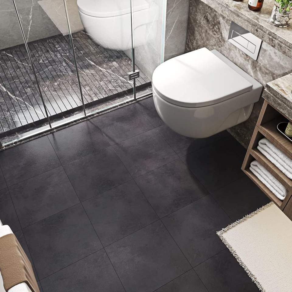 กระเบื้องพื้นพีวีซีสีดำแอนทราไซต์ไวนิลมีกาวในตัวสำหรับห้องครัวห้องน้ำจดหมายสั่งซื้อบรรจุไวนิลใช้ในร่ม