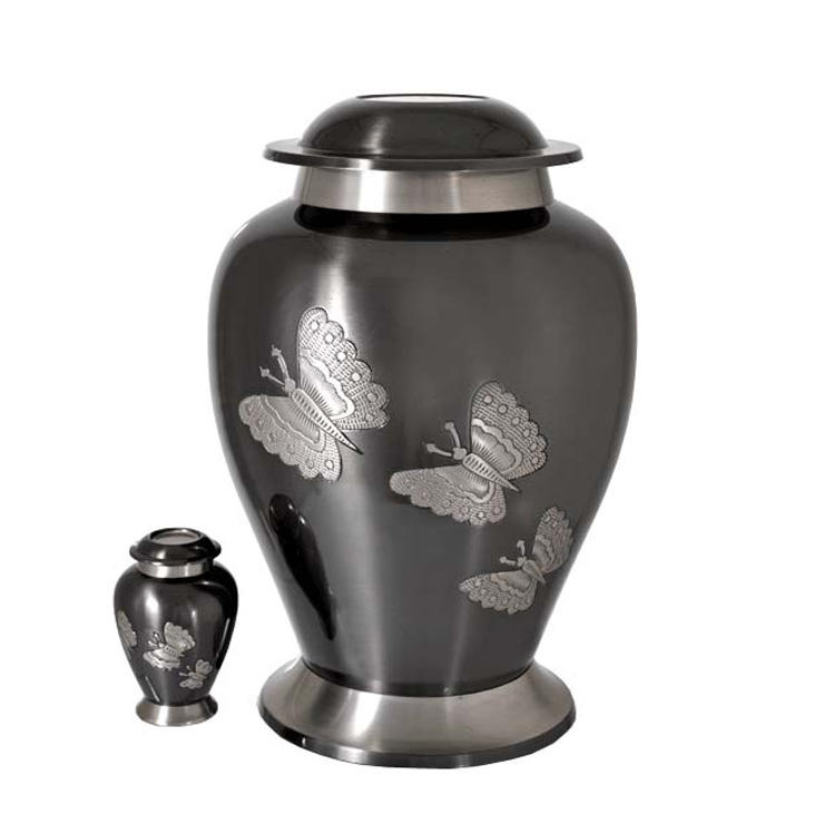 สีดำโบราณเสร็จสิ้นการแกะสลักทองเหลืองเผาศพโกศศพขี้เถ้าพรีเมี่ยมที่มีคุณภาพที่ขายดีที่สุดมนุษย์เถ้าโกศเก็บ