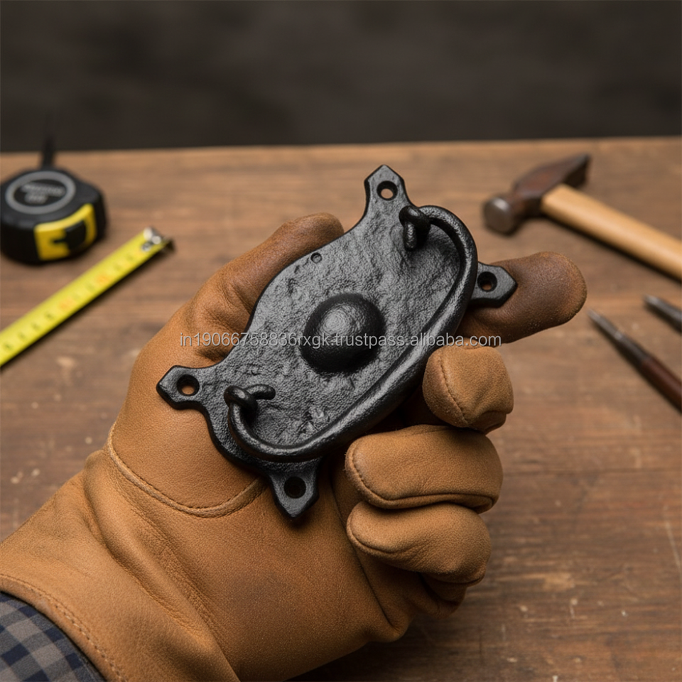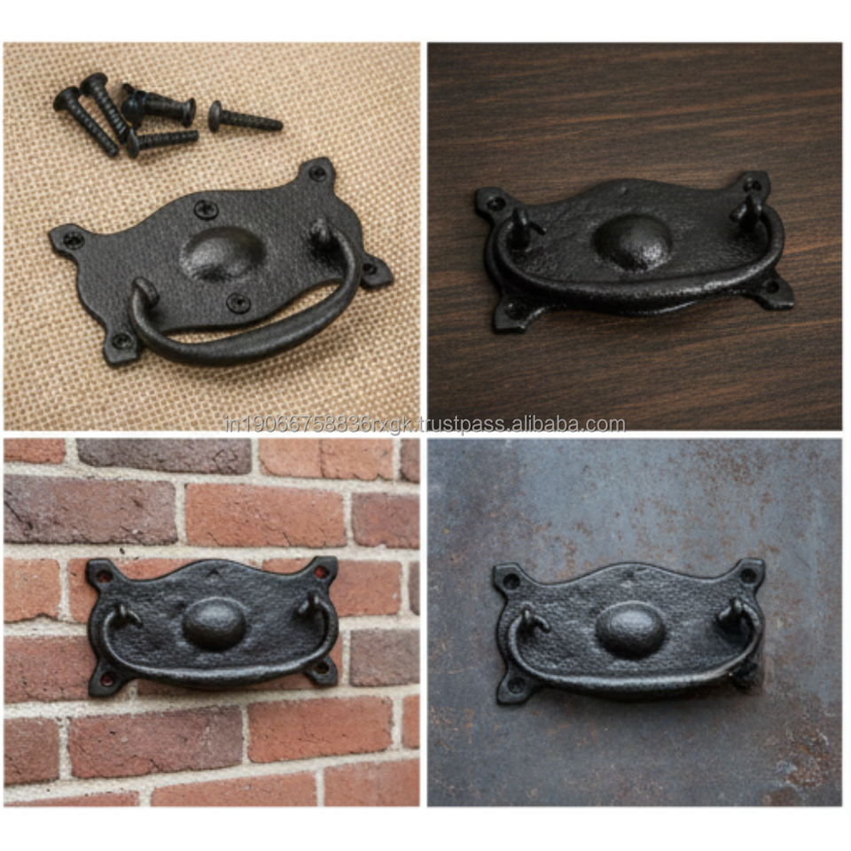 มือจับเหล็กวินเทจสีดำพร้อมดีไซน์ห่วงโค้งสำหรับตู้ลิ้นชักครัวและเฟอร์นิเจอร์โรงแรม