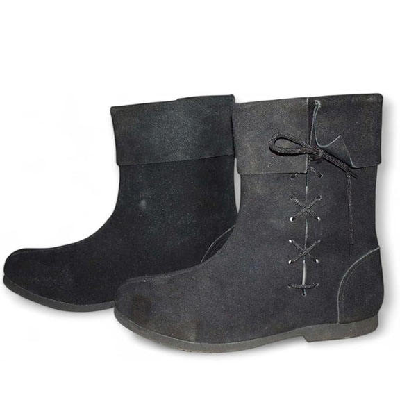 ชุดอัศวินยุคกลางสีดำสำหรับผู้ชาย ชุดขุนนางยุคฟื้นฟูศิลปวิทยา ทำจากหนัง PU ลายรุ้ง ทำด้วยมือ พร้อมรองเท้า