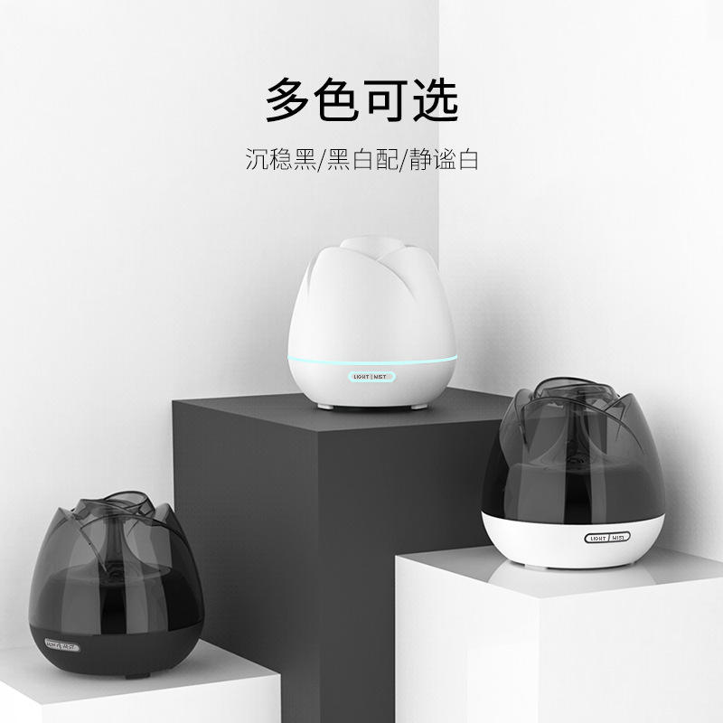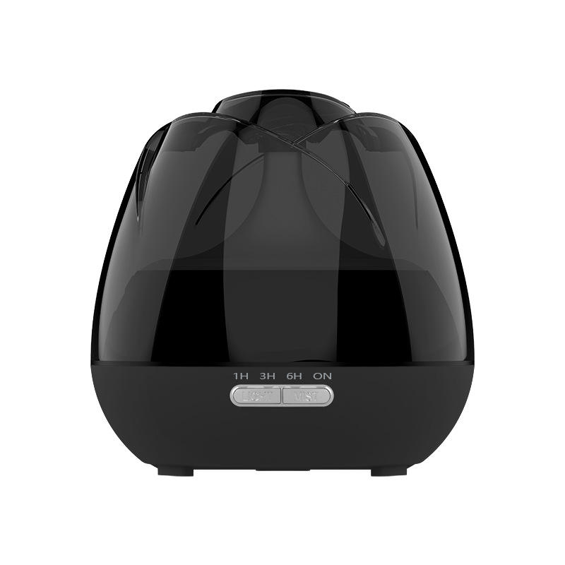 เครื่องกระจายกลิ่นหอมสีดำ 400 มล. เครื่องเพิ่มความชื้นแบบอัลตราโซนิก พร้อมไฟ LED สำหรับใช้ในบ้านและสำนักงาน
