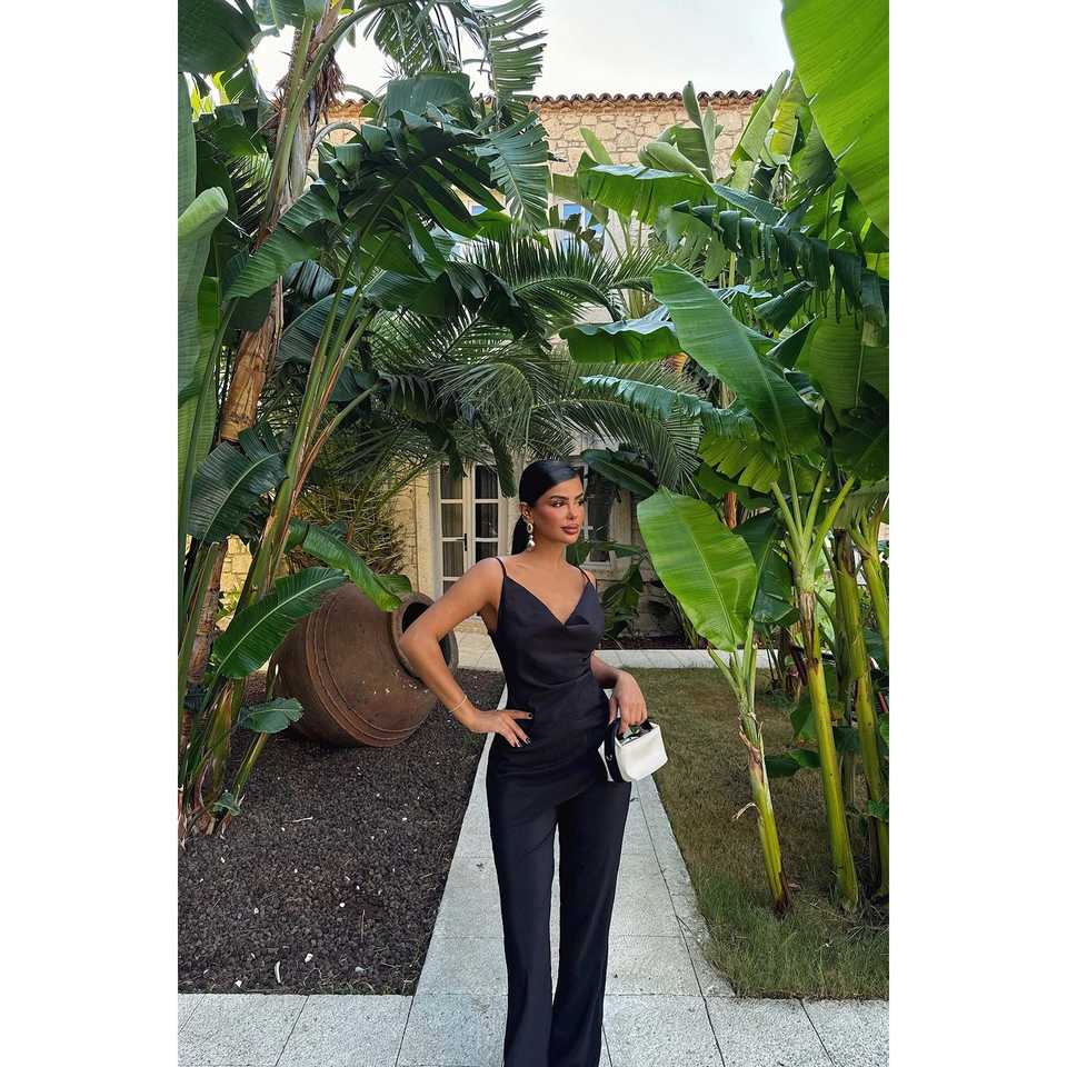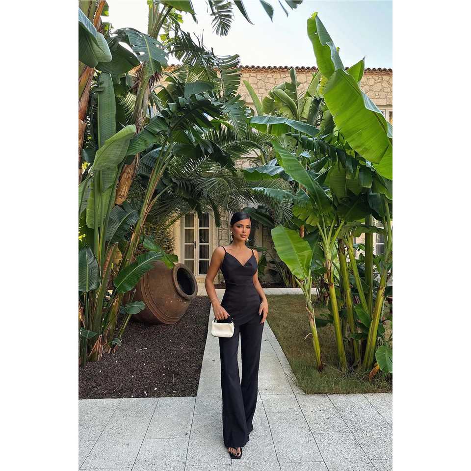 ชุดเซ็ต 2 ชิ้น เสื้อคอเฉียงสีดำ สายรัด ผ้าถัก ไซส์ XS ชุดออกงานกลางคืนสำหรับฤดูร้อน กางเกงขาสั้นผ่าข้าง