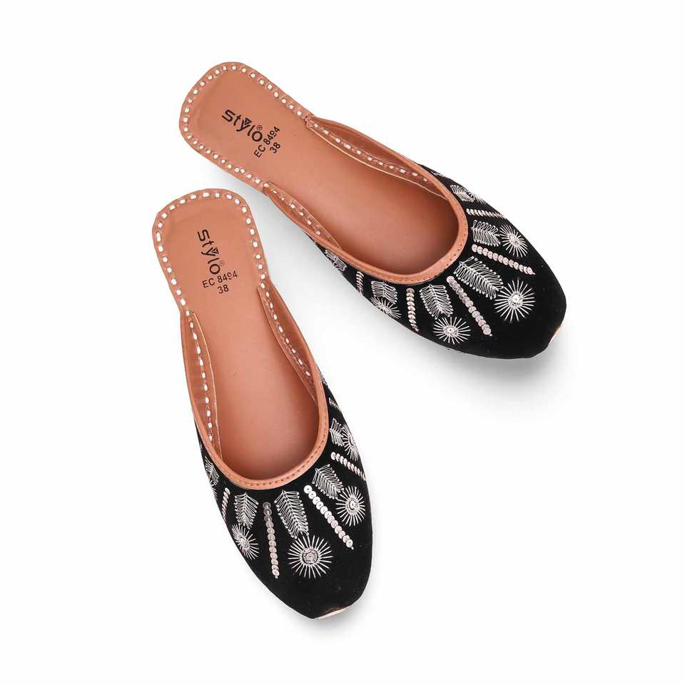 รองเท้าส้นแบนสีดำเปิด EC8494 khusa