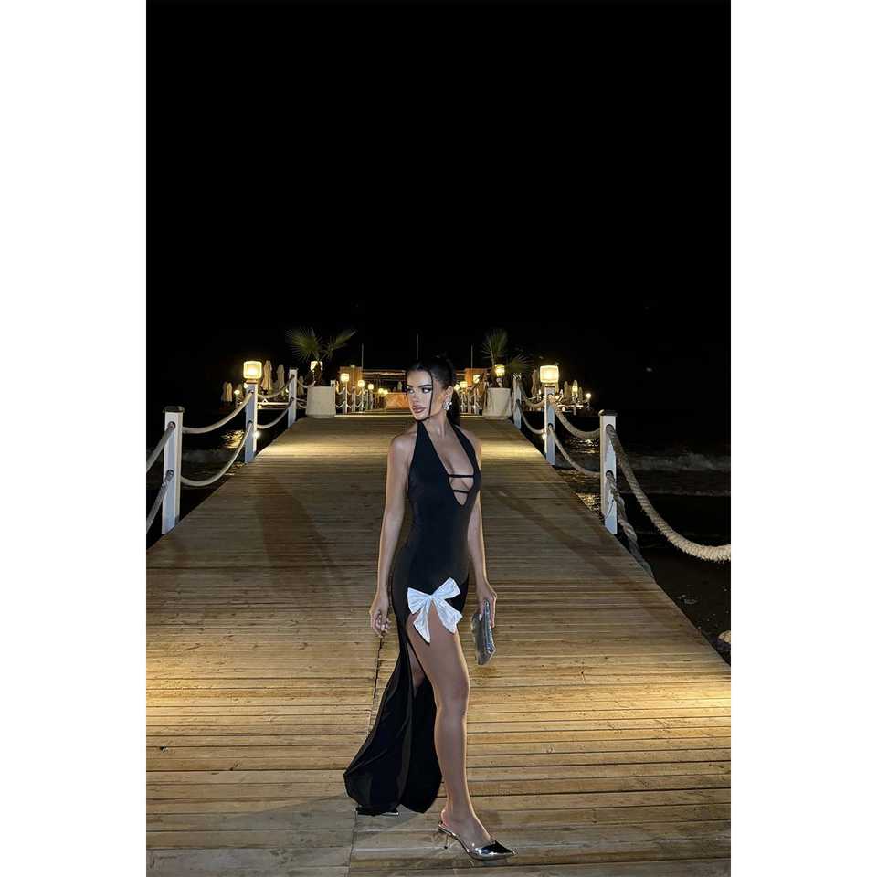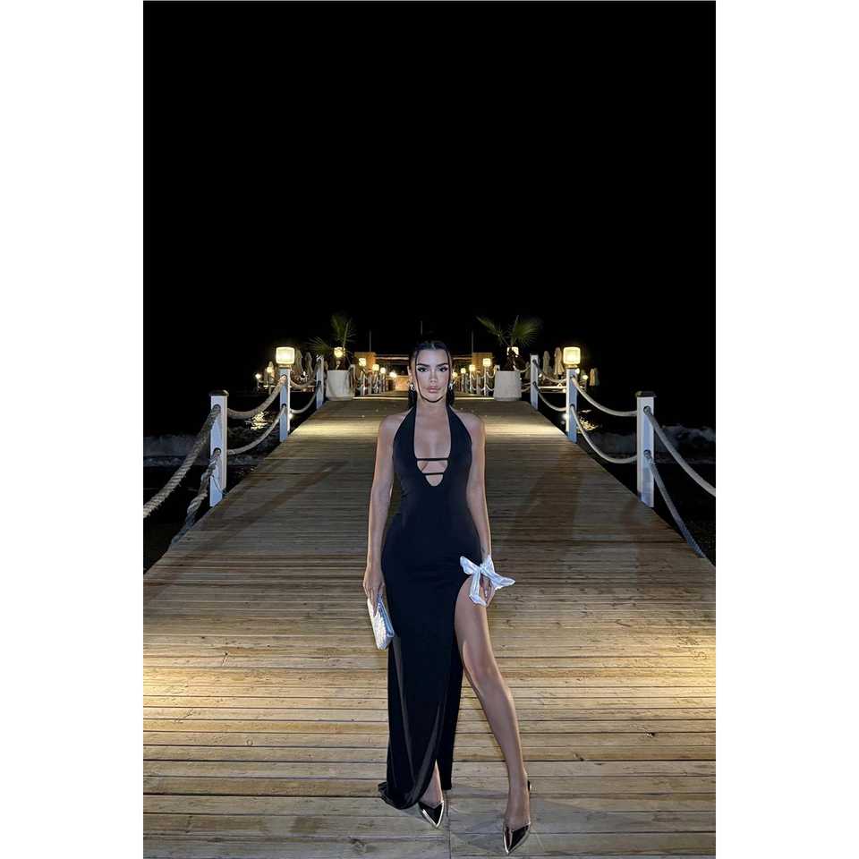 ชุดราตรีสีดำทรงบอลกาวน์ ลายสามมิติ คอสูง ทรงเอ็มไพร์ ผ่าข้างเรียบง่าย สำหรับงานพรอม ไซส์ XS-ยาวถึงพื้น