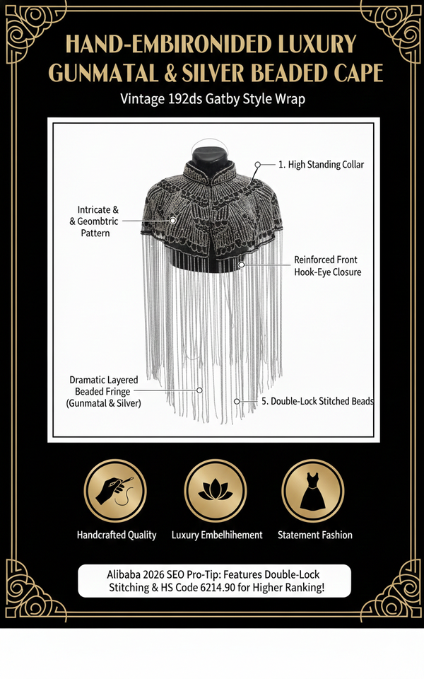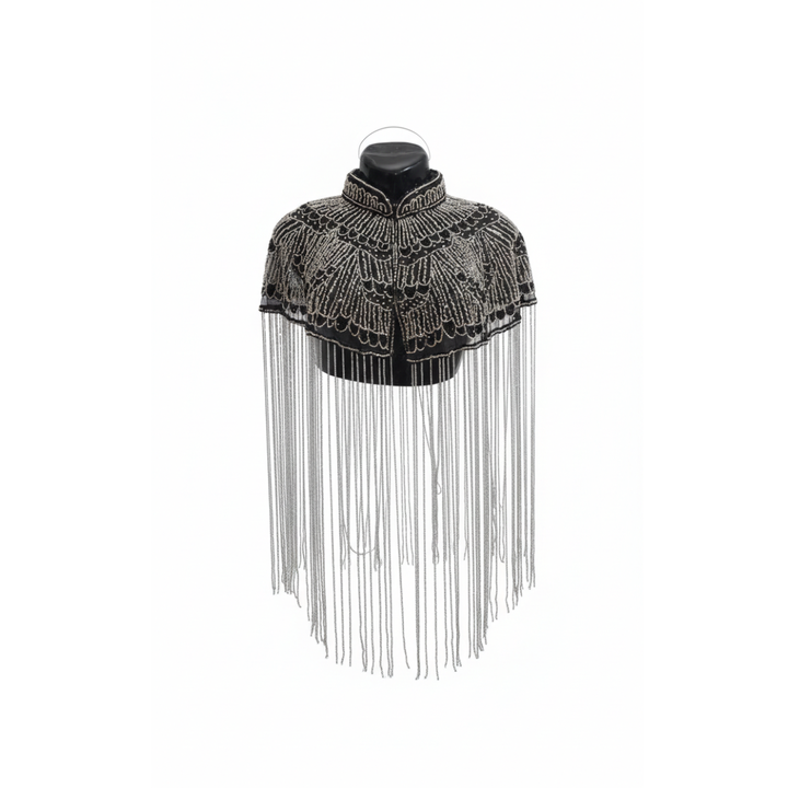 ผ้าคลุมไหล่ประดับลูกปัดสีดำ Ellora สำหรับผู้หญิง งานแต่งงาน งานเลี้ยงตอนเย็น ชุดเดรสปักคริสตัล ผ้าคลุมไนลอน