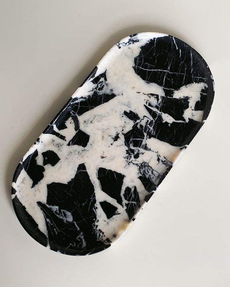 ถาดหินอ่อนทรงกลมสีดำขอบมนดีไซน์หรูหราถาดเสิร์ฟสำหรับตกแต่งบ้านถาดหินอ่อนหรูหราตกแต่งกลางโต๊ะ