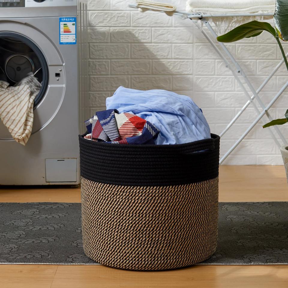 ตะกร้ามาคราเม่สีน้ำตาลดำอุปกรณ์จัดระเบียบอเนกประสงค์ตกแต่งอย่างมีสไตล์สำหรับห้องนอนห้องครัวห้องนั่งเล่นจากอินเดีย