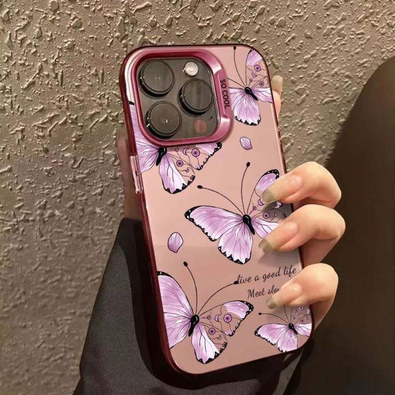 เคสโทรศัพท์ลายผีเสื้อสีดำสำหรับ iPhone 17 16 Pro Max iPhone 13 11 12 14 15 Pro Max ป้องกันการกระแทก ป้องกันการตก ชุบเคลือบ