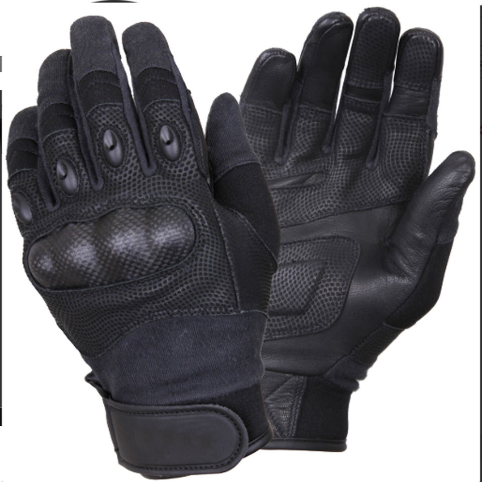 ถุงมือแบบแข็งคาร์บอนไฟเบอร์สีดำสำหรับขับขี่กลางแจ้งถุงมือหนัง PU