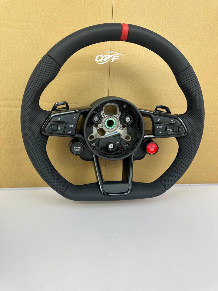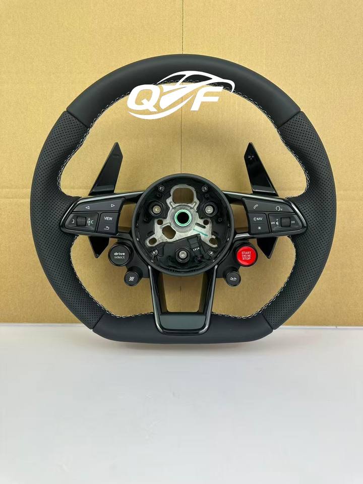 พวงมาลัยรถยนต์คาร์บอนไฟเบอร์สีดำและหนังสามารถปรับแต่งได้สำหรับรถยนต์ออดี้ Q C8 A1 A3 A4 A5 A6 A7 A8 B6 B7 B8 B9 C6 C7 TT R8