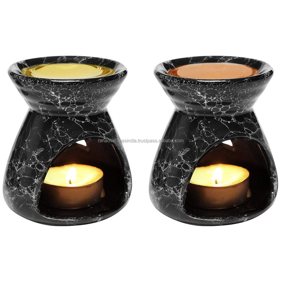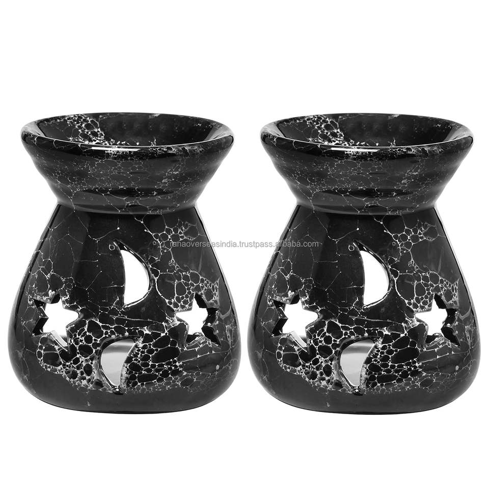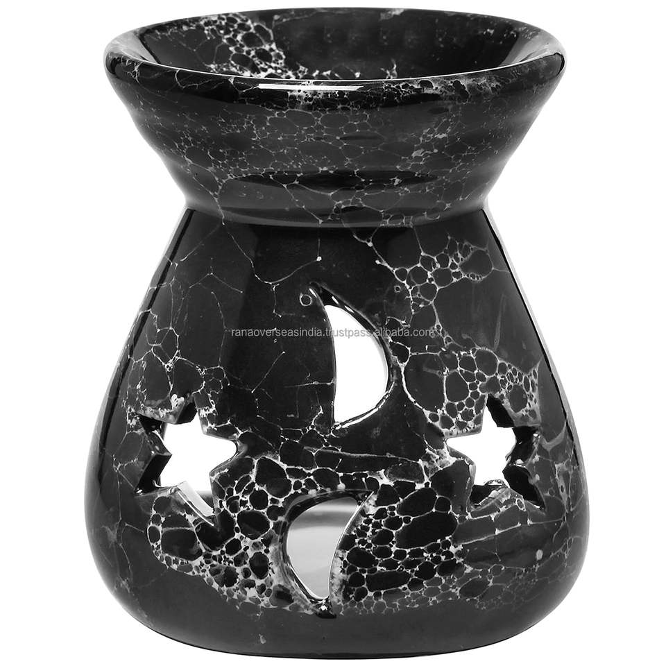 Black Ceramic Essential Oil Burner Tealight Candle Holder Decorative Aroma Diffuser