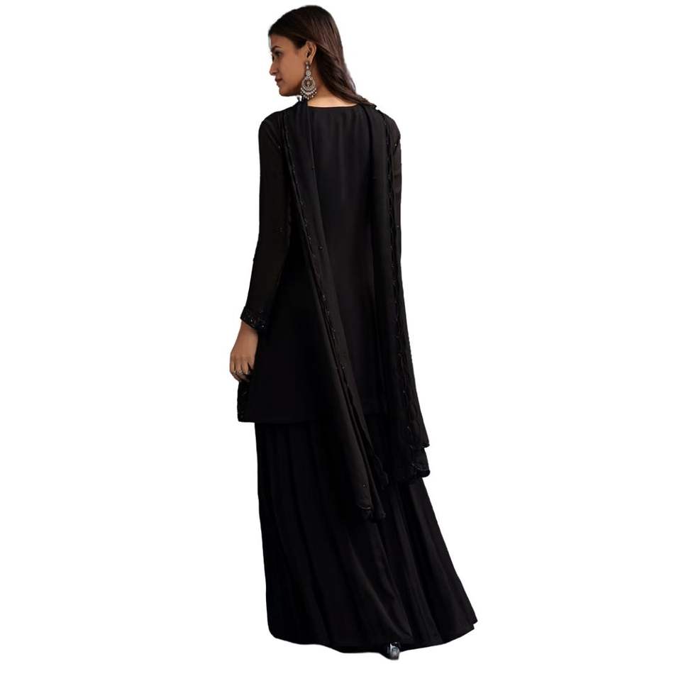 ชุดสูท Chinon Palazzo สีดำตัดดาน่าและเลื่อมงานขายส่งสำหรับผู้หญิงเสื้อผ้าชาติพันธุ์ผลิตตามแบบ