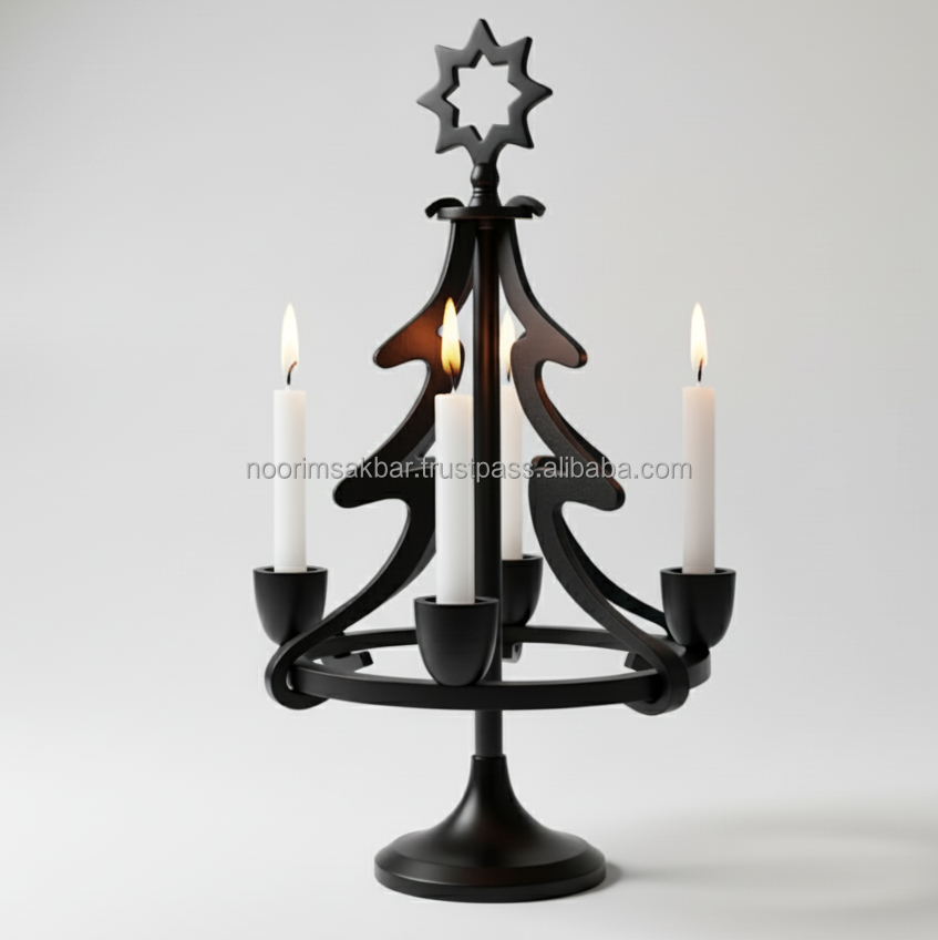 ที่วางเทียนรูปต้นคริสต์มาสสีดำที่วางเทียนชาทั้งสี่ต้นต้นไม้แบบแกว่งตกแต่งโต๊ะวันหยุดส่งออกคุณภาพ