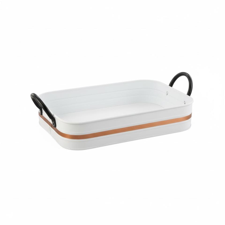 ถาดเสิร์ฟโลหะชุบสังกะสีเคลือบสีดำ พร้อมหูจับ รูปทรงวงรี สำหรับใช้ในบ้านและร้านอาหาร สำหรับเสิร์ฟอาหารและเครื่องดื่ม