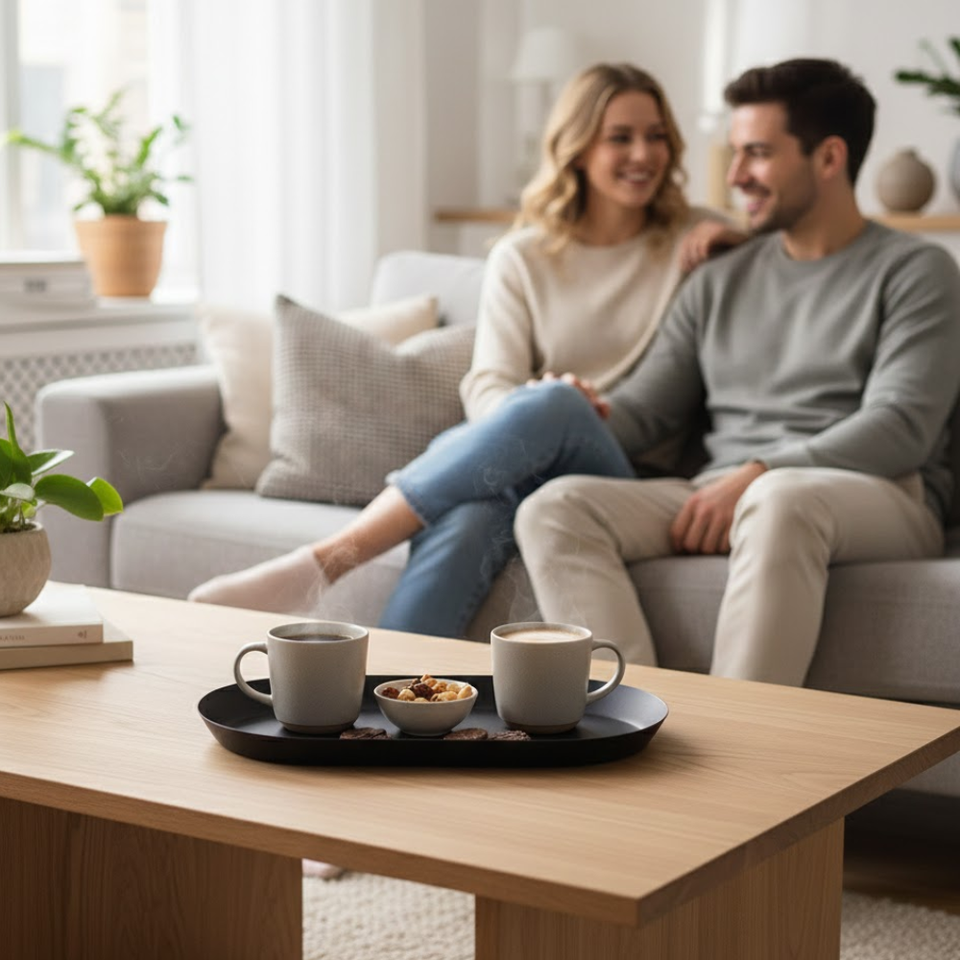ถาดเสิร์ฟเหล็กเคลือบสีดำ | ถาดโลหะทรงสี่เหลี่ยมขนาด 10” x 5.5” สำหรับโต๊ะกาแฟ เคาน์เตอร์ครัว โต๊ะเครื่องแป้ง และของตกแต่งบ้าน