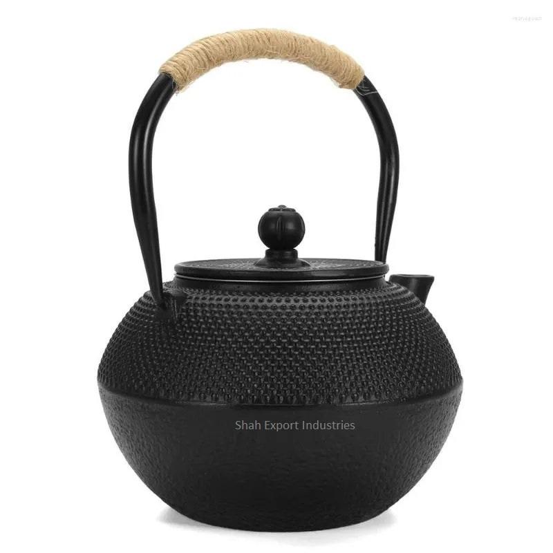 กาน้ำชาโลหะเคลือบสีดำพร้อมลูกบิดที่ทันสมัยและที่จับปอกระเจาสำหรับกาต้มน้ำที่ให้บริการชาที่บ้านและโรงแรม