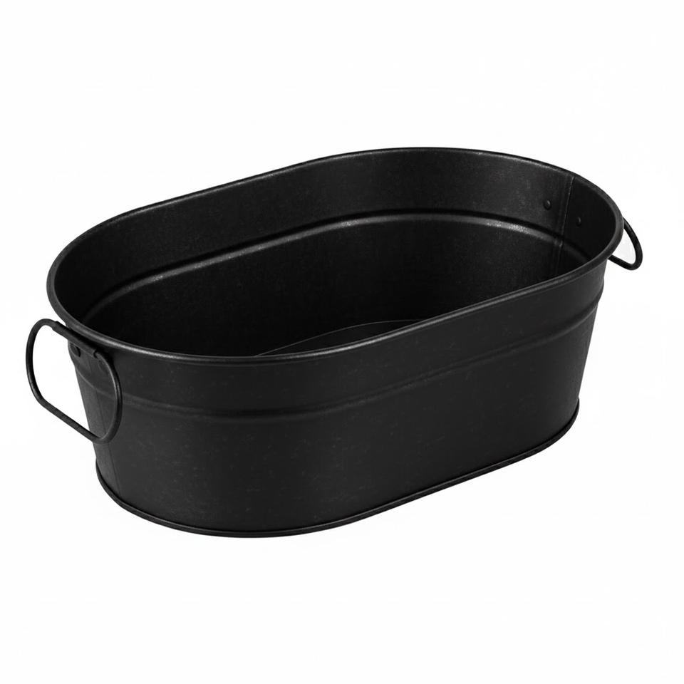 ถังแช่ไวน์ทรงรีเคลือบสีดำ ถังน้ำแข็งโลหะสำหรับแชมเปญ ดีไซน์ใหม่ อุปกรณ์เสริมบาร์ ถังแช่ไวน์