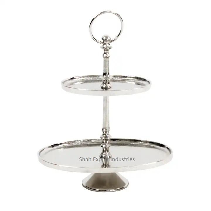 แท่นวางเค้กกลม2ชั้นเคลือบสีดำพร้อมก้านสีทองสำหรับงานเลี้ยงวันเกิดและงานแต่งงานอุปกรณ์ทำเค้กบนโต๊ะ