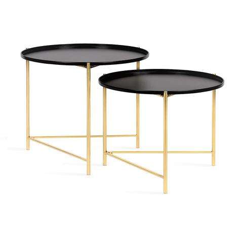 โต๊ะกาแฟเคลือบสีดำคุณภาพพรีเมียมสำหรับตกแต่งบ้าน ห้องนั่งเล่น วิลล่า โต๊ะกาแฟโลหะแบบชุด 2 ตัว