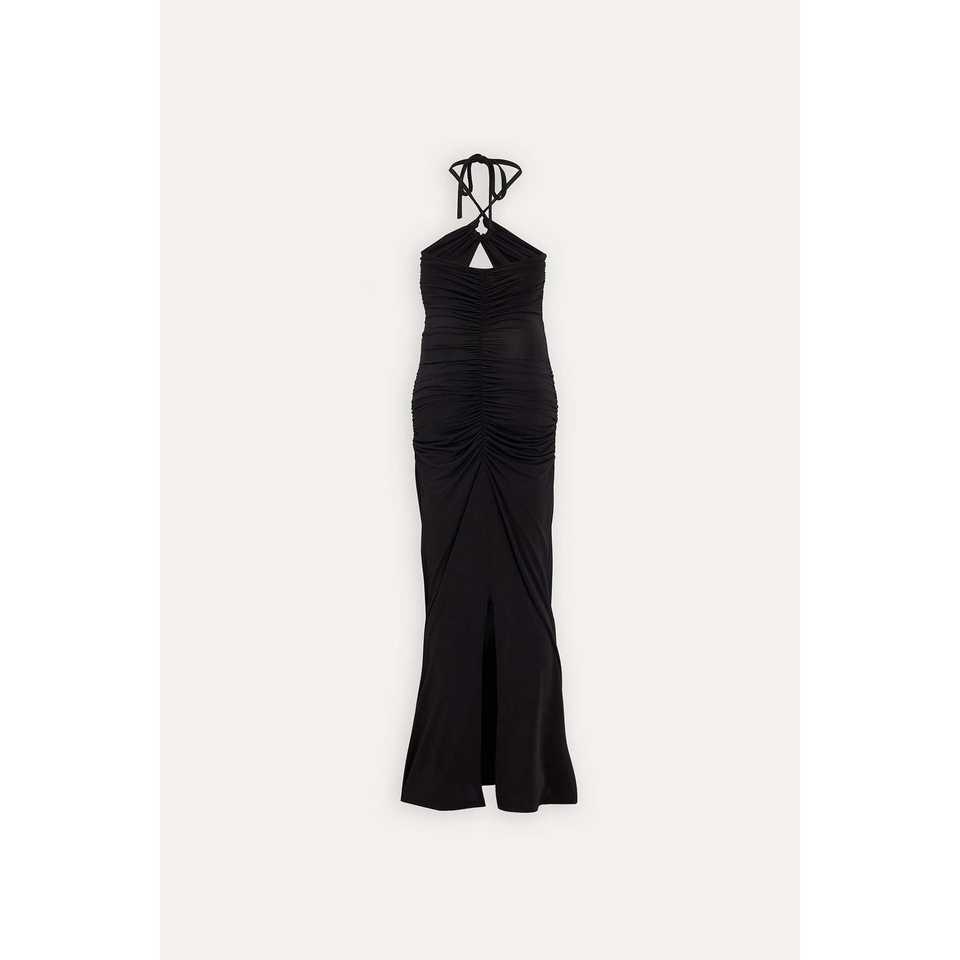 ชุดเดรสค็อกเทลสีดำพร้อมดีเทลด้านหลังที่ประณีต