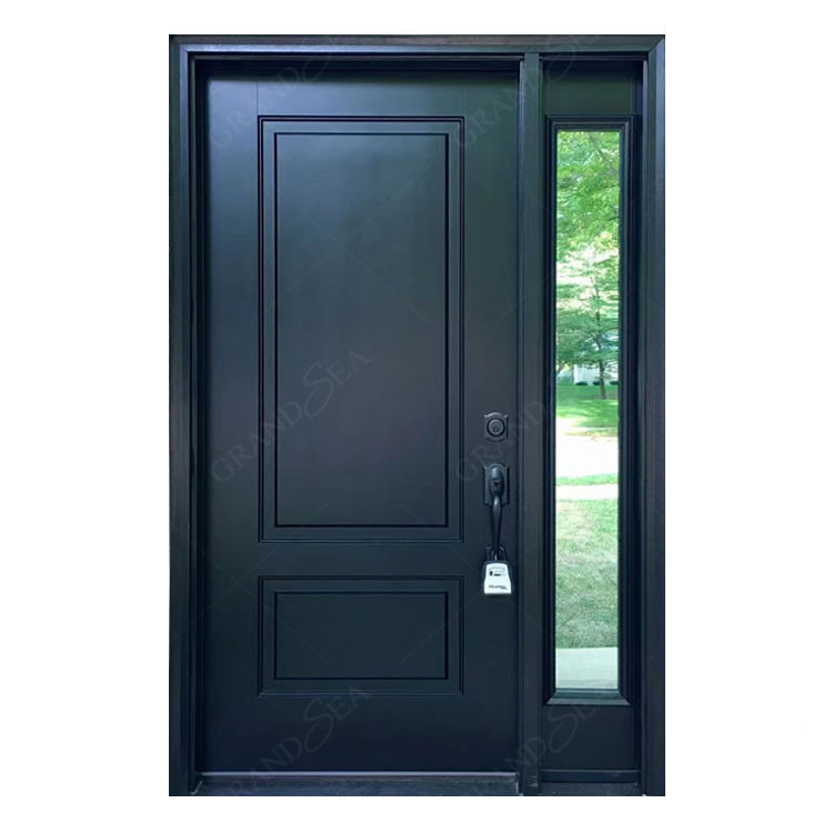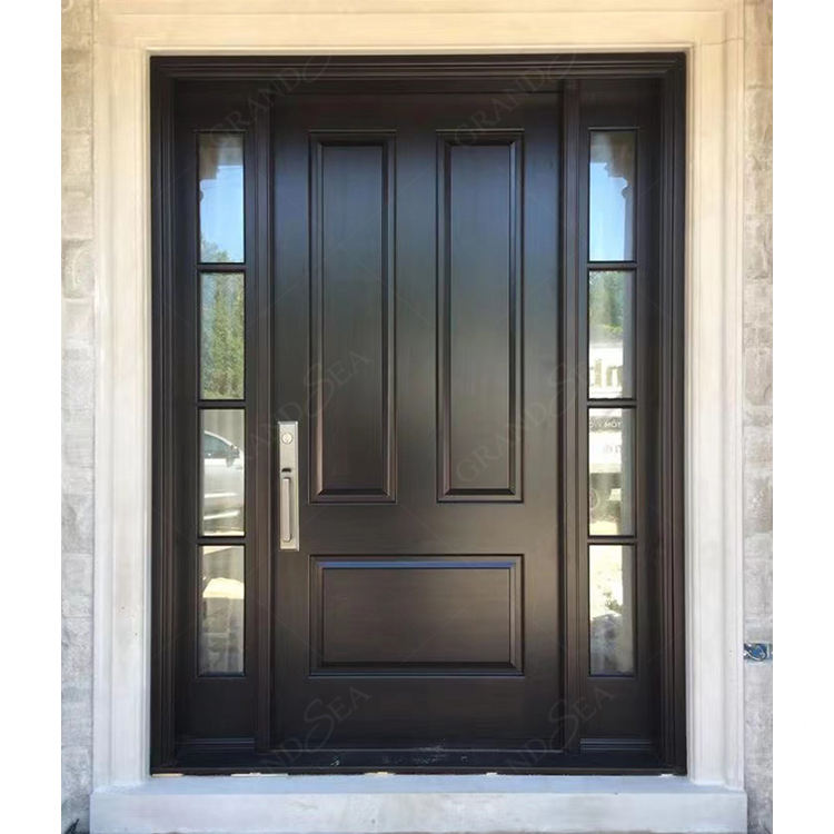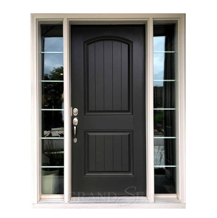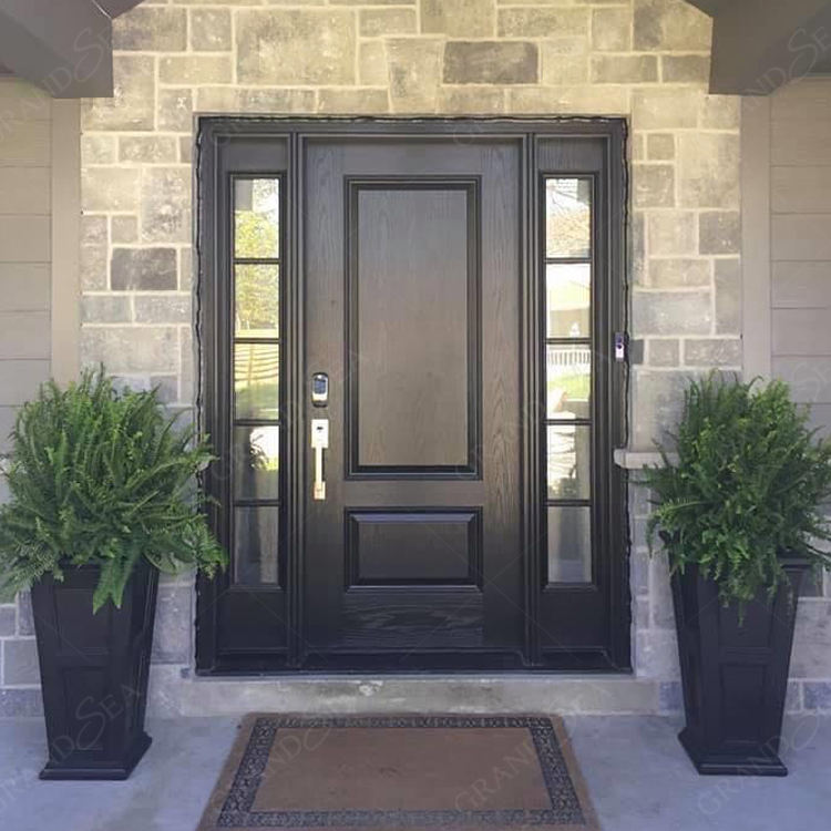 ประตูไม้เนื้อแข็งเพื่อความปลอดภัยสำหรับบ้านหลังใหญ่สีดำลายกราฟวงกลมแก้วแบบอินเซ็ตสีแดง
