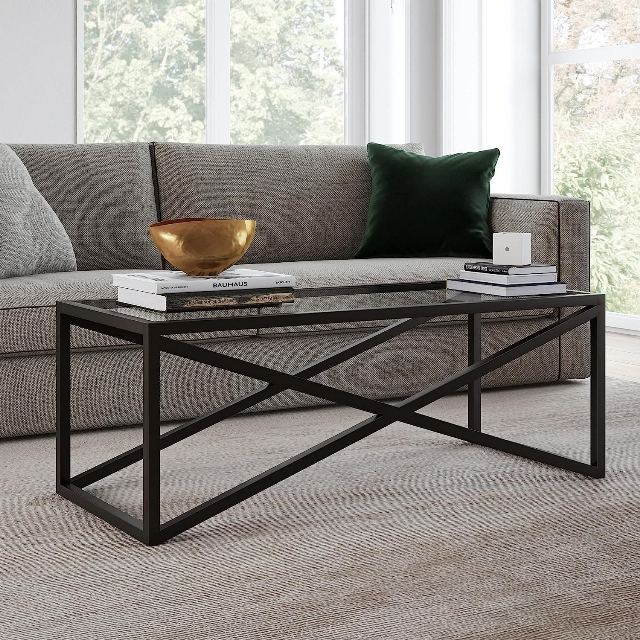ชื่อผลิตภัณฑ์:โต๊ะกลางสีดำพร้อมกระจก