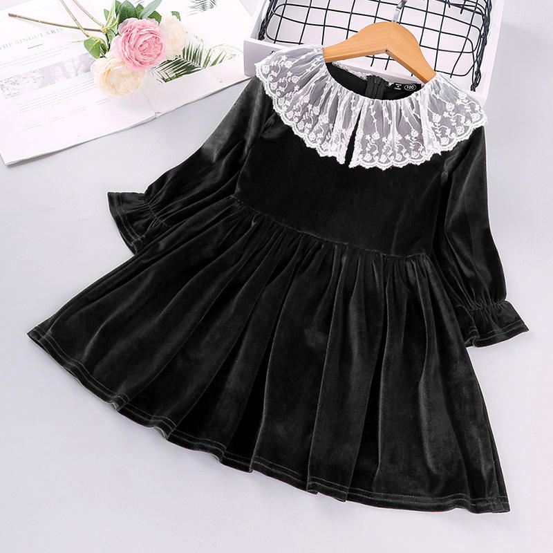 ชุดเด็กสีดำ ชุดเด็กผู้หญิงมุสลิม ชุดเดรสลูกไม้สีขาว ชุดเดรสสไตล์โบราณสำหรับเด็ก