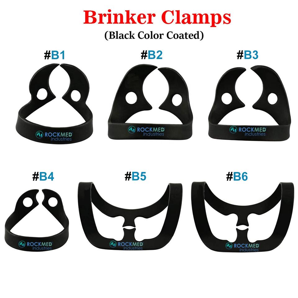 Black Color Coated Brinker Dental Clamps Rubber Dam Universal Tissue Retractors B1-B2-B3-B4-B5-B6 (Black)