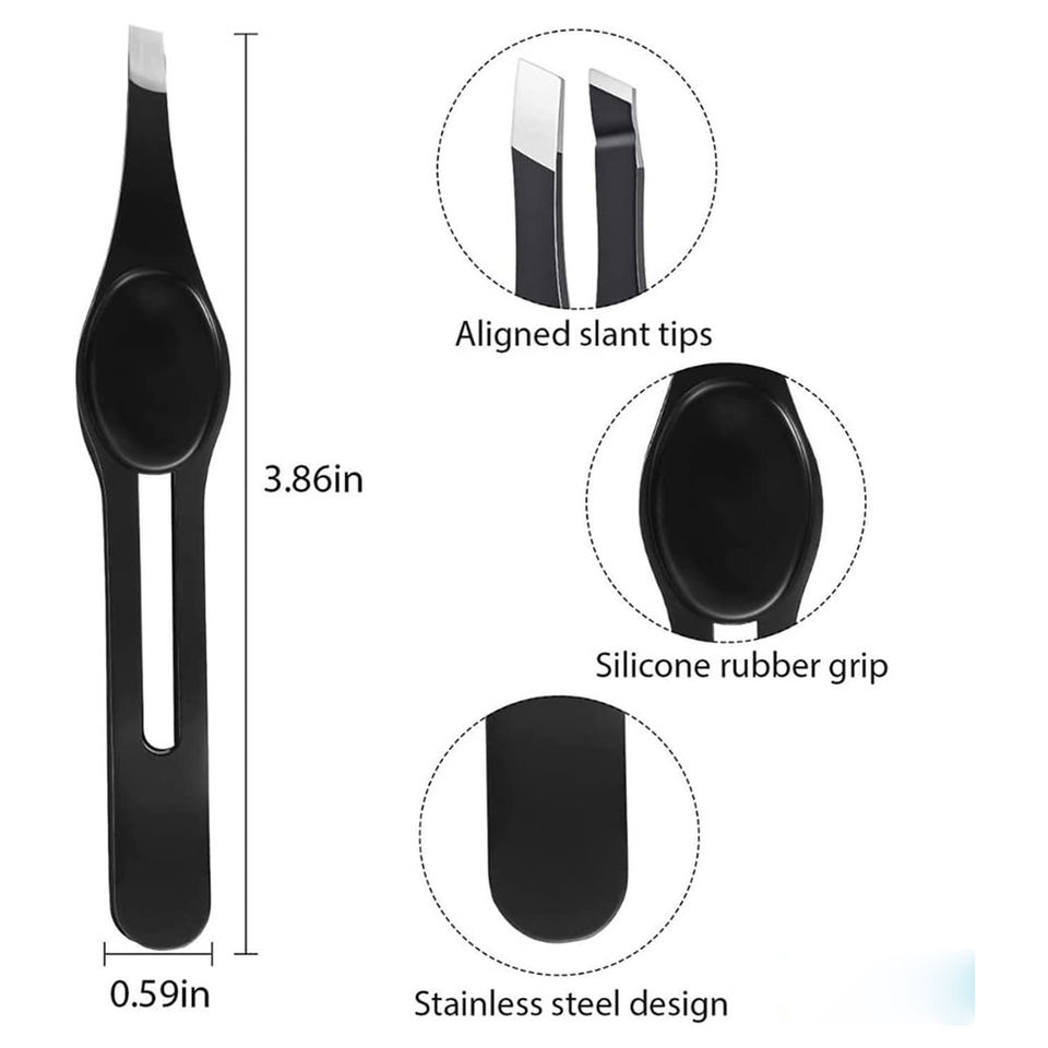 แหนบถอนขนทรงเฉียงเคลือบสีดำ สำหรับถอนขนด้วยด้าย พร้อมที่จับนิ้วหัวแม่มือ