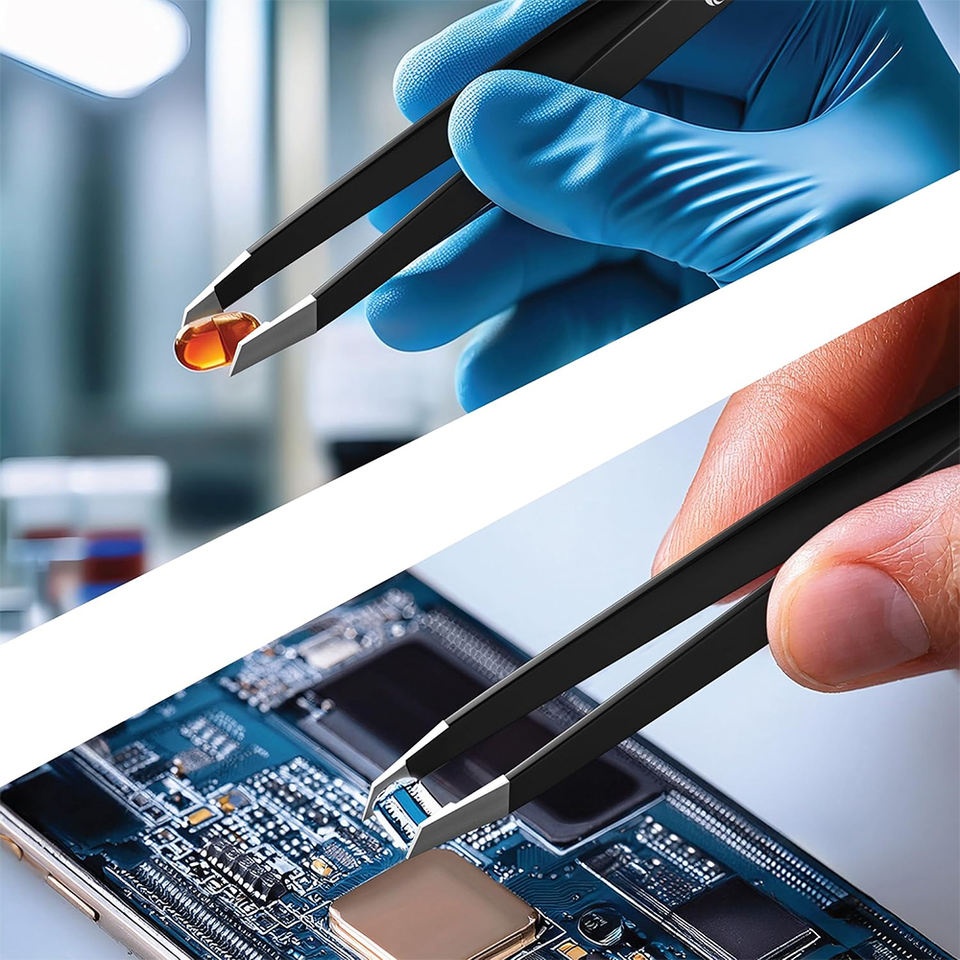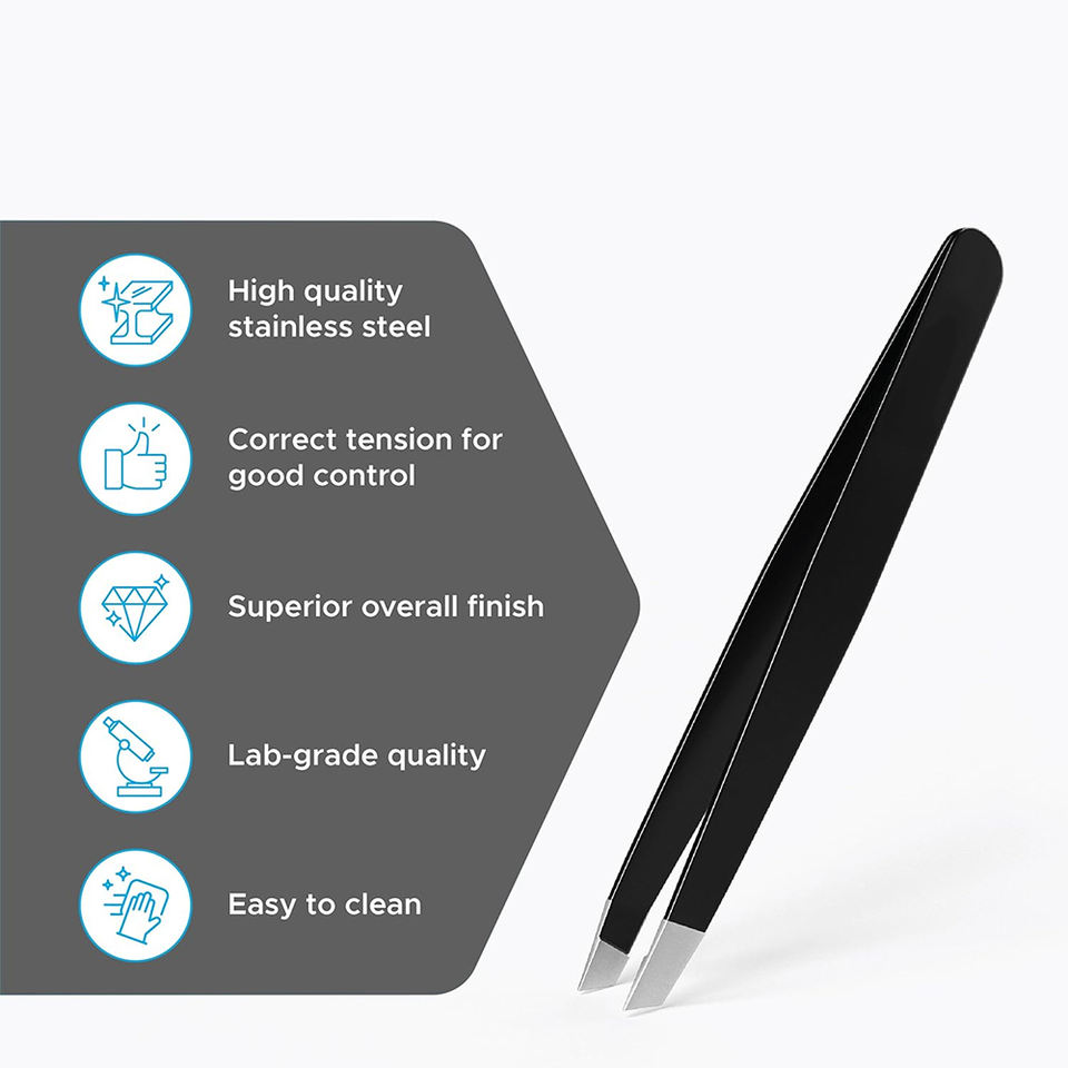 แหนบปลายเฉียงเคลือบสีดำ สแตนเลส 4 นิ้ว สำหรับถอนขนหน้าผาก แหนบถอนขนคิ้วเพื่อความงาม