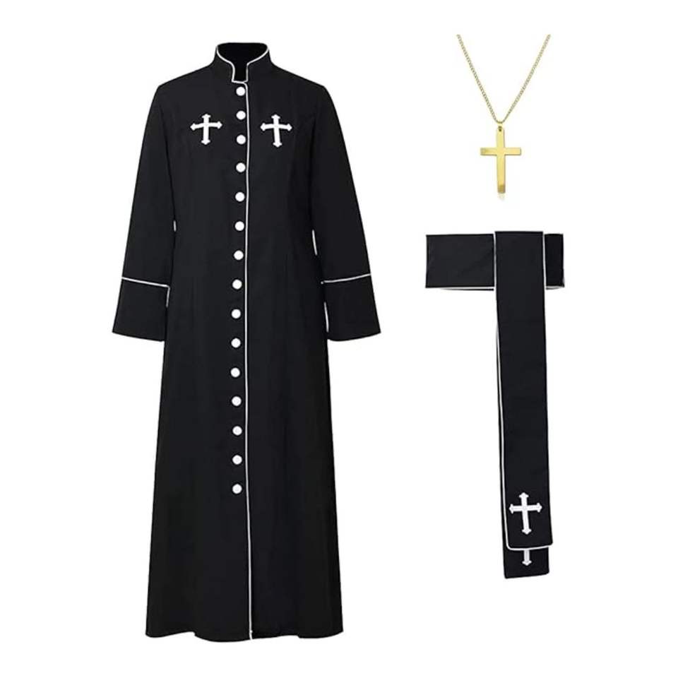ชุดเสื้อคลุมเสื้อคลุมเสื้อคลุมสำหรับนักบวชชาวคาทอลิกและชาวแองกลิกันสีดำ