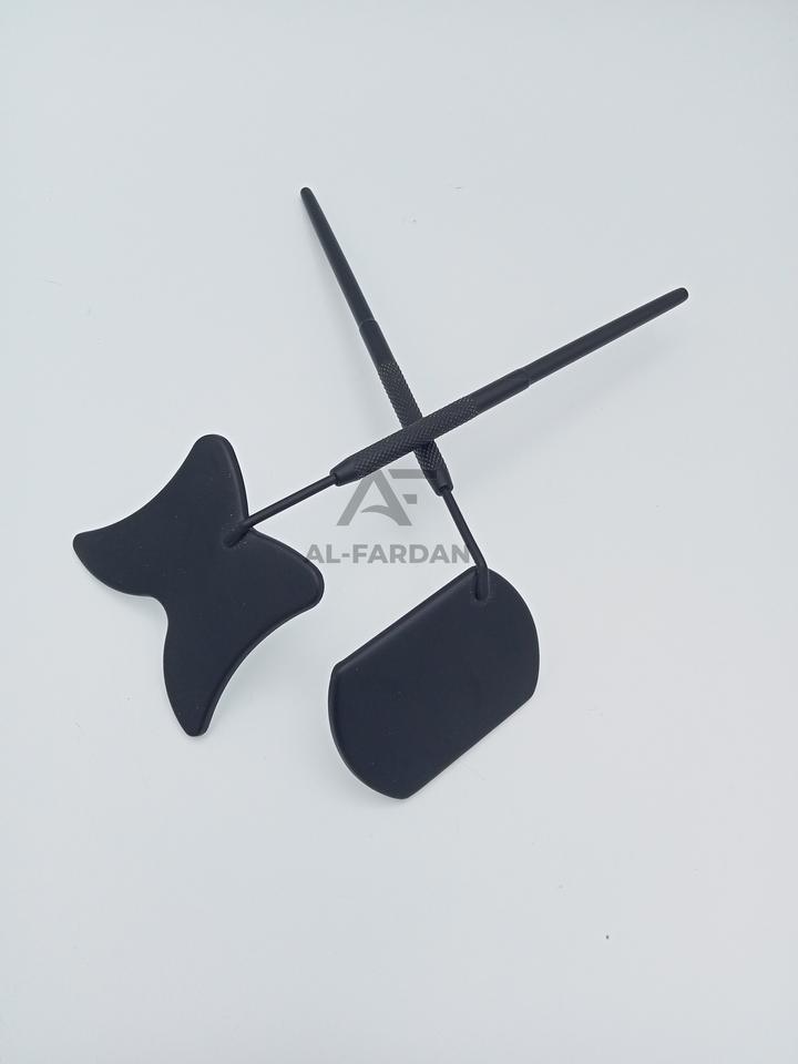 ที่หนีบขนตาปลอมทรงผีเสื้อสีดำทรงสี่เหลี่ยมทำจากสเตนเลสคงทนปรับโลโก้ได้ตามต้องการ