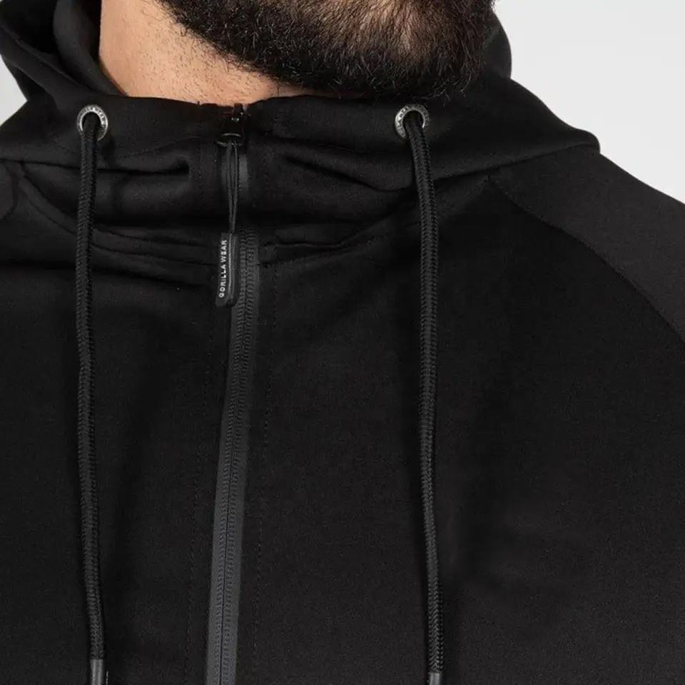ชุดวอร์มออกกำลังกายสีดำสำหรับผู้ชาย ชุดกีฬา 2 ชิ้น ชุดวิ่งสบายๆ เสื้อฮู้ดมีซิป