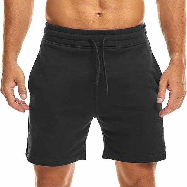 กางเกงขาสั้นผ้าฟลีซสีดำเอวยางยืดสำหรับผู้ชายขาย