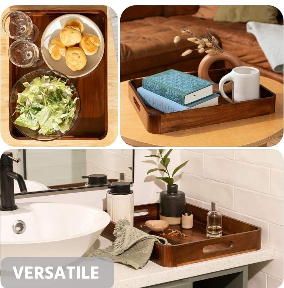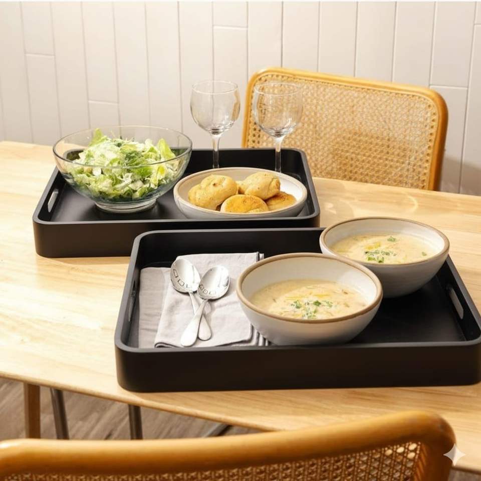 ถาดเสิร์ฟไม้ทำมือสีดำ ทนทาน ใช้ตกแต่งได้ เหมาะสำหรับใช้ในบ้านและร้านอาหาร มีจำหน่ายแล้ว